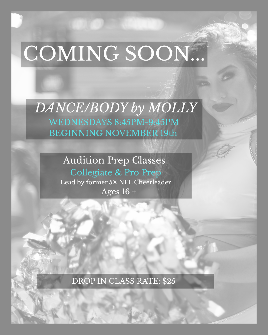 This class is designed exclusively for dancers ready to reach the next level. Whether you are auditioning for Pro Cheer/Dance, a Collegiate Dance or Cheer Team or simply want to train at a high level, prepare to be challenged physically & mentally.